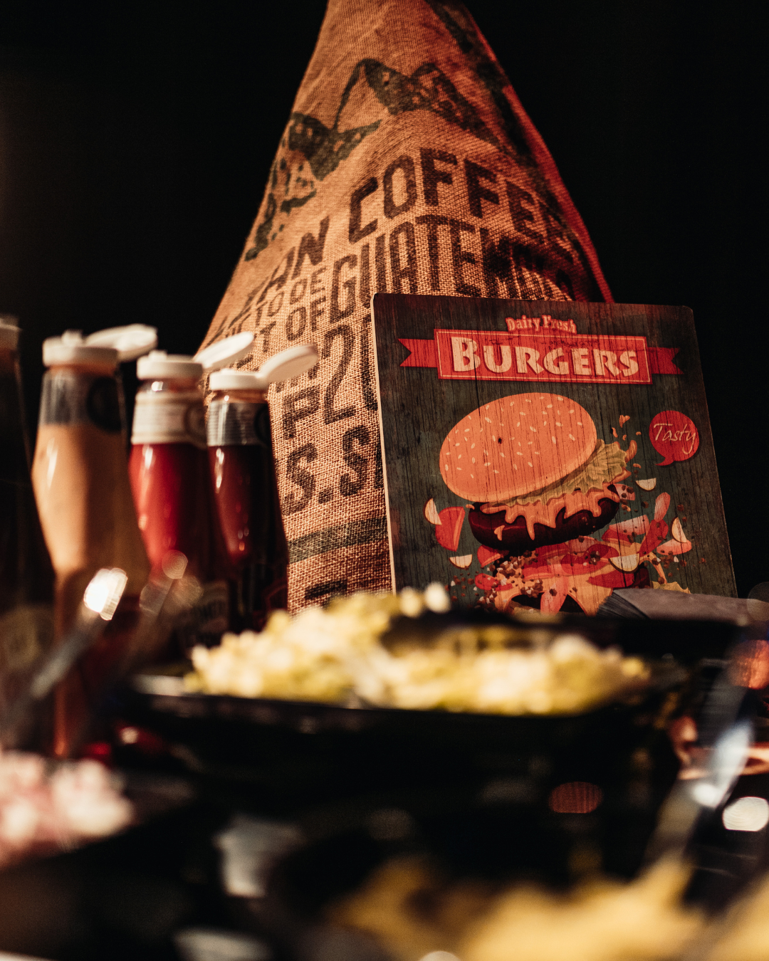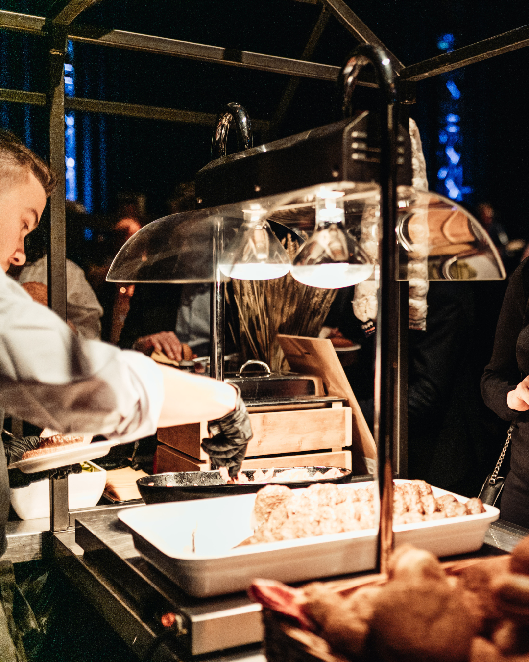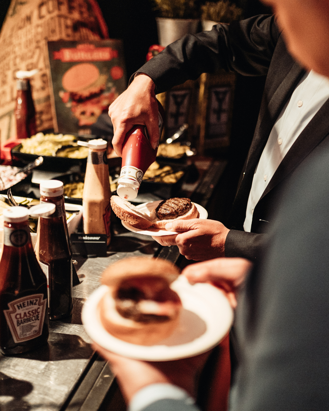 onze koks grillen live bij jou op het event. De geur van vers gegrilde 100% Black Angus burgers vult de lucht, het geluid van sissend vlees op de plaat trekt meteen de aandacht en al snel en voordat je het weet, staat er een rij enthousiaste gasten klaar voor hun burgermoment.