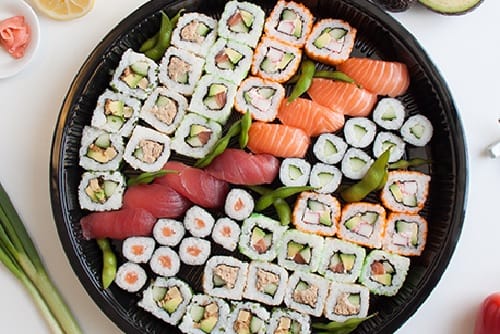 Geserveerd met soja en wasasbi
